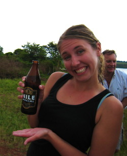 Celebrating with a Nile beer