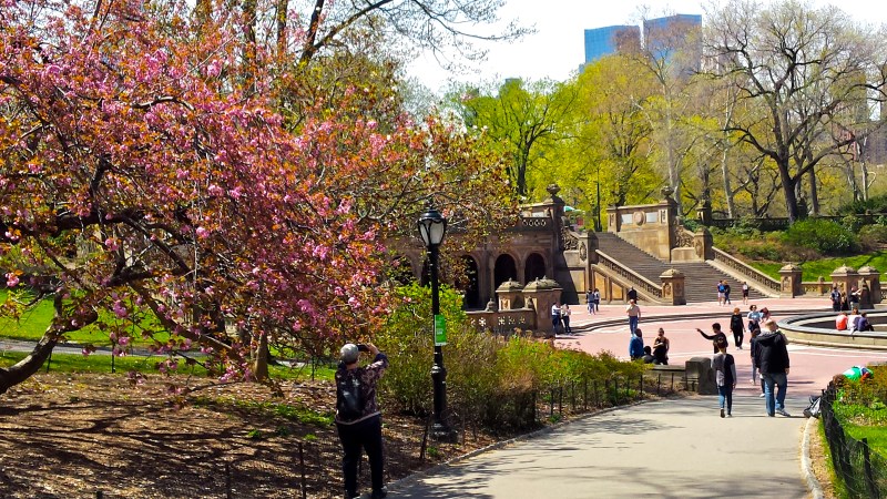 Trees in bloom around Bethesda Terrace