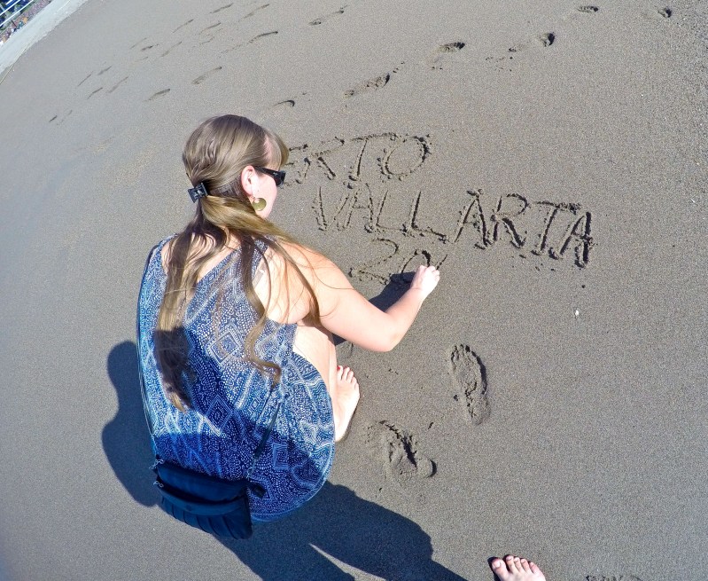 Writing in the sand on my birthday in Puerto Vallarta, Mexico