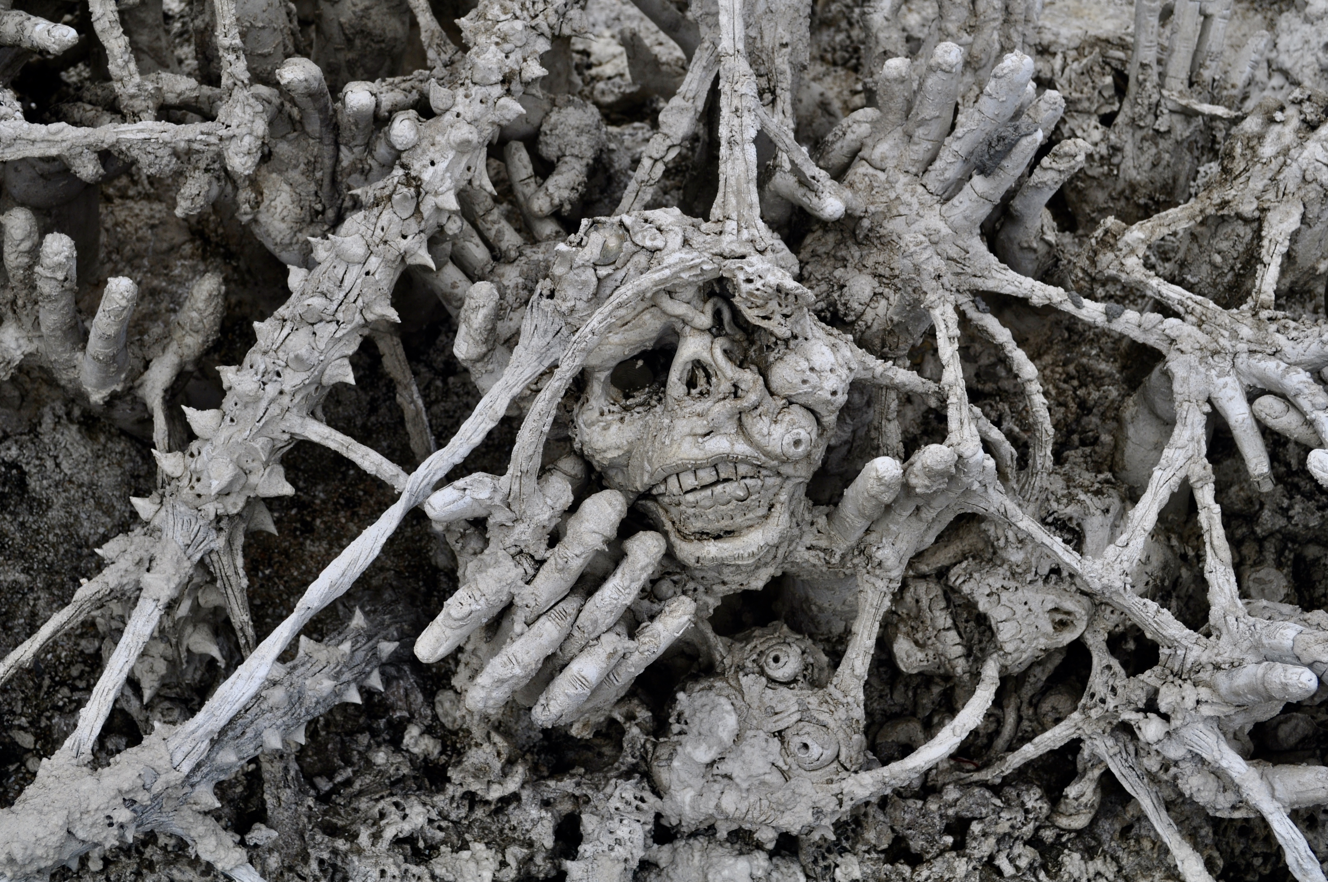 Skulls and hands reaching up from Hell