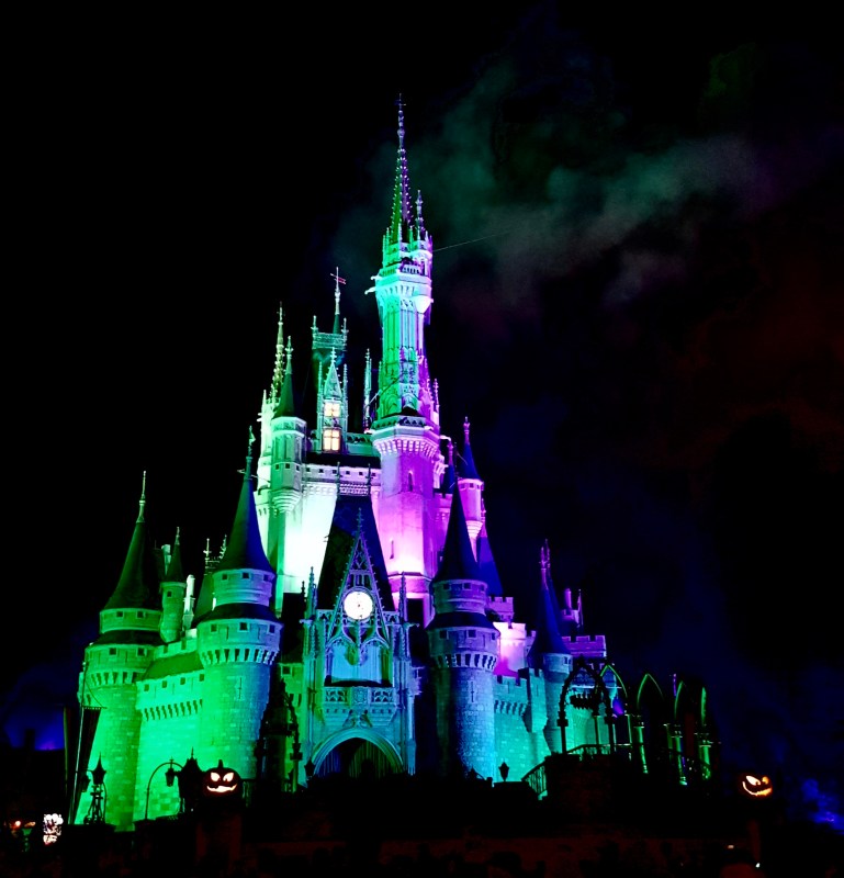 Creepy Cinderella Castle decorated for Halloween