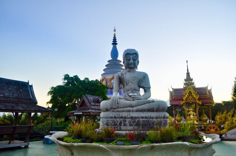 One of my favourite photos of the day- A Buddha statue with some of the other buildings in the complex surrounding it with the colourful Crystal Pagoda peeking out in back.