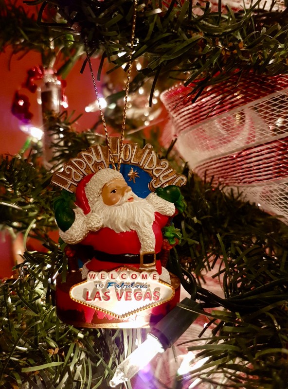 Santa with the bright lights of Vegas