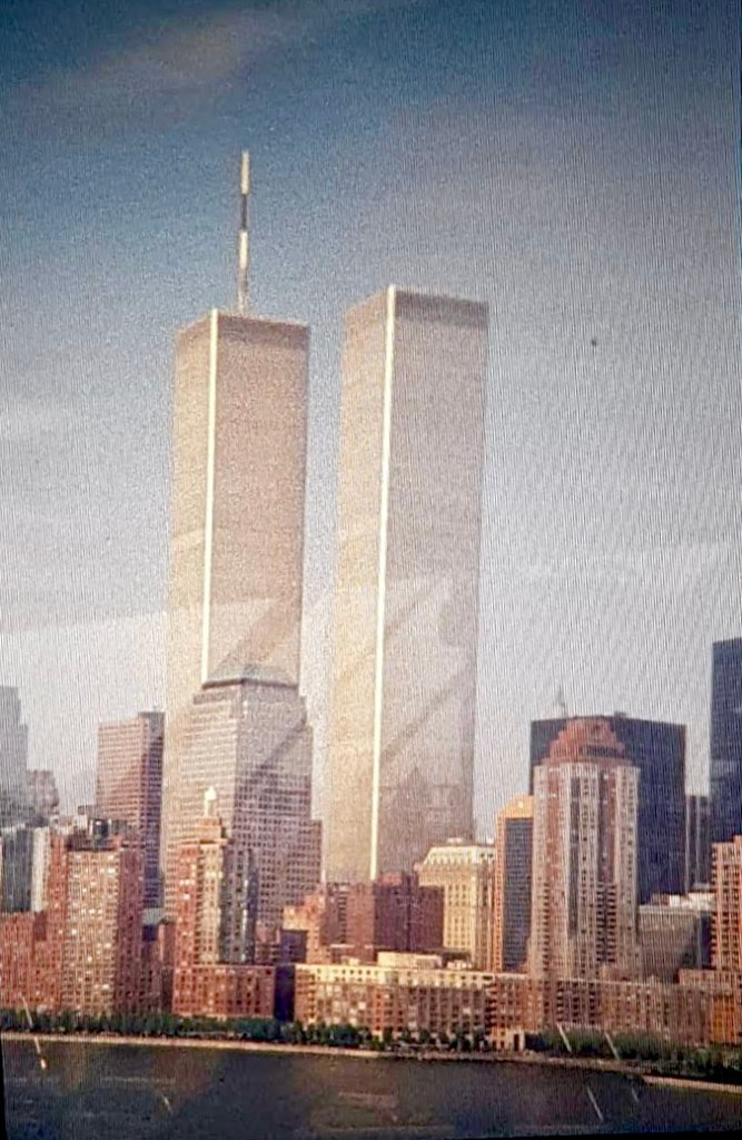A grainy old photo she’d taken through the window on the cruise ship of the Twin Towers, standing tall above the Hudson River.